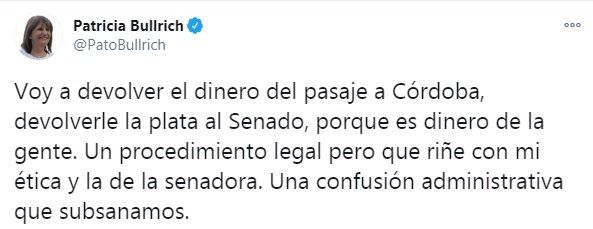 Continúa el escándalo por el vuelo de Patricia Bullrich a Córdoba, quien el pasado domingo 8 de noviembre viajó a esa provincia para participar de una marcha opositora denominada #8N. Además de los pasajes de la titular del PRO, se conoció que el Senado también pagó los de sus colaboradores Leonardo Neumann y Sergio Koltan.