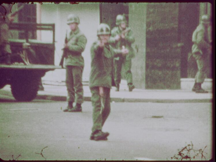Imágenes de la grabación del periodista argentino. Los militares habĂan tirado la cámara. Pudo recuperarse (Cinemateca Nacional Chilena)